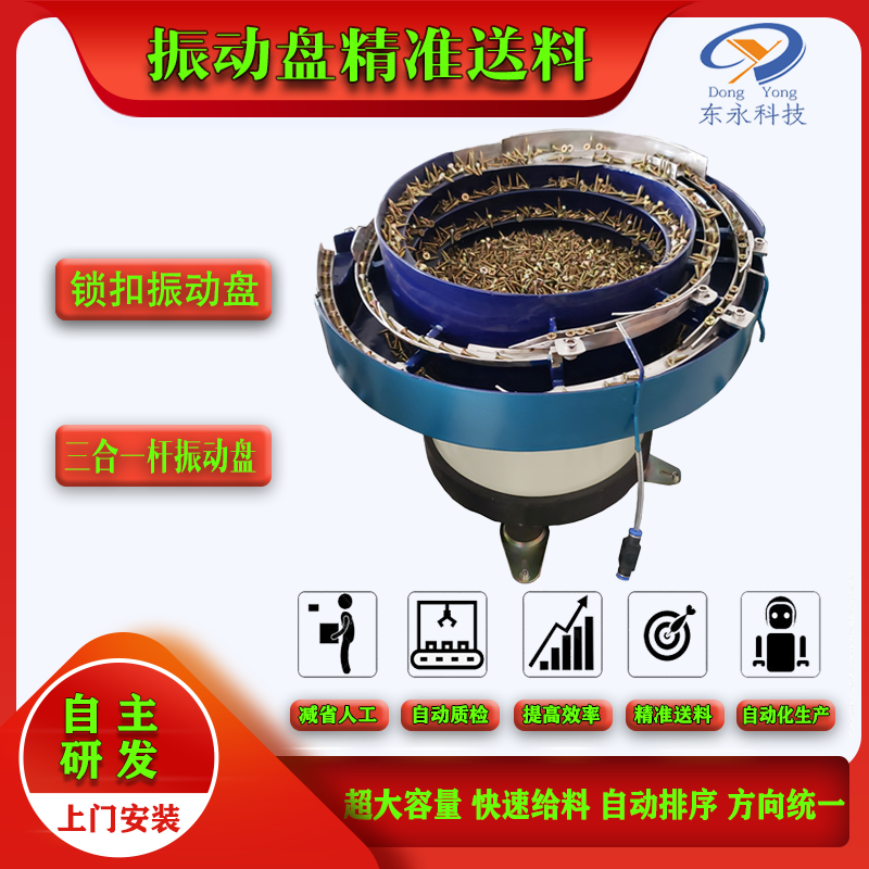 振動(dòng)盤(pán)是一種自動(dòng)定向排序的送料設(shè)備振動(dòng)盤(pán)的組成:料斗、底盤(pán)、控制器、直線送料器等配套組成。其工作目的是通過(guò)振動(dòng)將無(wú)序工件自動(dòng)有序定向排列整齊,準(zhǔn)確地輸送到下道工序振動(dòng)盤(pán)的料斗分為筒形料斗,螺旋訣線料斗、錐形料斗、等分線料斗等五種;底盤(pán)有正拉底盤(pán),側(cè)拉底盤(pán)聲壓電式底盤(pán),精密底盤(pán)四種:控制器分為普通控制器、調(diào)頻控制器、分級(jí)空制器、帶緩啟動(dòng)控制器、數(shù)顯調(diào)頻控制器五種:直線送料器可很據(jù)客戶需求訂制各式各樣型號(hào)直線送料器,也可很據(jù)產(chǎn)品要求訂制振動(dòng)盤(pán)是一種自動(dòng)組裝機(jī)械的輔助設(shè)備是一種能自動(dòng)定向排序的送料設(shè)備能把各種產(chǎn)品有序排出來(lái),它可以配合自動(dòng)組裝設(shè)備一起將產(chǎn)品各個(gè)部位組裝起來(lái)成為完整的一個(gè)產(chǎn)品。